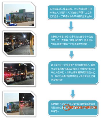 停车诱导 通过安装在停车场的采集摄像机对各停车场的车位相关信息进行采集,并按照一定规则通过数据传输网络将信息送至中央控制模块,由中央控制模块对信息进行分析处理后存放到数据库服务器,同时分送给信息发布模块,提供诱导服务。